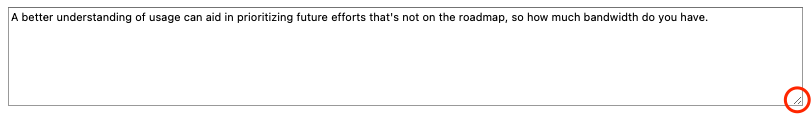 When an element is resizeable, it has a little UI handle on a lower corner. The handle appears on the right on page elements when the page’s direction is set to ltr (left-to-right), and on the left on rtl (right-to-left) pages.